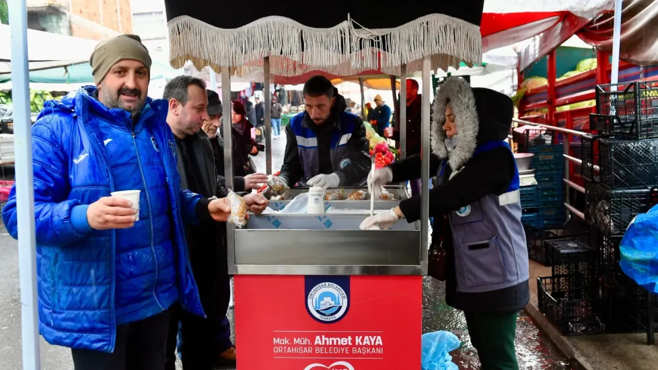 Seyyar çorba aracının ilk durağı, Ortahisar’ın en yoğun noktalarından biri olan Yenicuma Semt Pazarı oldu. Sabahın erken saatlerinde pazara gelen vatandaşlara ve tezgâh başında emek veren pazar esnafına sıcak çorba ikram edildi. Soğuk havaya rağmen pazardaki hareketlilik sürerken, çorba ikramı kısa sürede yoğun ilgi gördü.